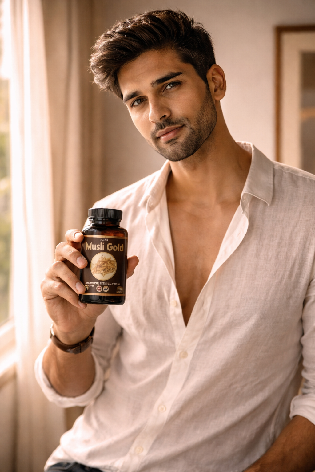 Nirog Lab Musli Gold Capsule is a premium Ayurvedic formulation specially crafted to support male reproductive health, improve stamina, and boost overall vitality. It is an ideal choice for men seeking a natural solution to improve energy, endurance, and fertility.