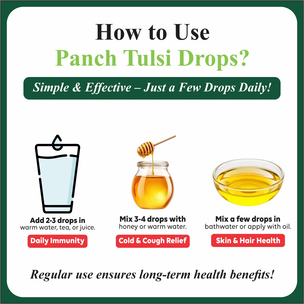 Nirog Lab Panch Tulsi Drop is a powerful Ayurvedic health supplement made from the extracts of five sacred Tulsi (Holy Basil) varieties.